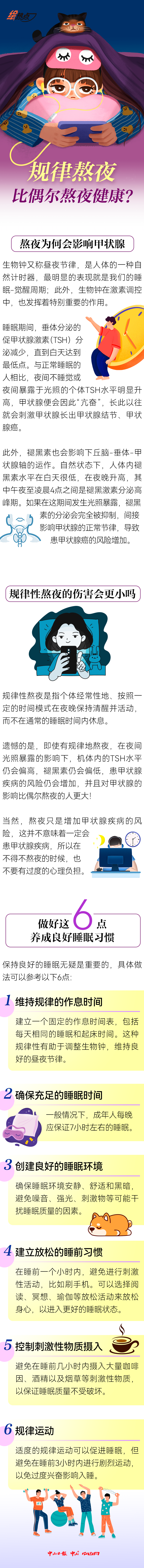 眾所周知,熬夜容易長甲狀腺結(jié)節(jié)、得甲狀腺癌。假如我們有規(guī)律地熬夜,對身體的危害會不會更小?今天,我們一起來聊一聊這個話題。