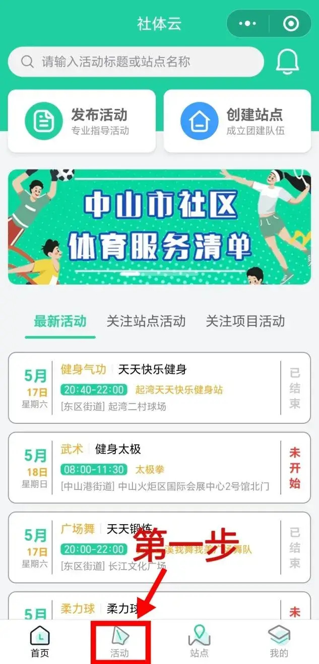 2.進入【社區(qū)體育服務(wù)清單】專區(qū)查看活動;