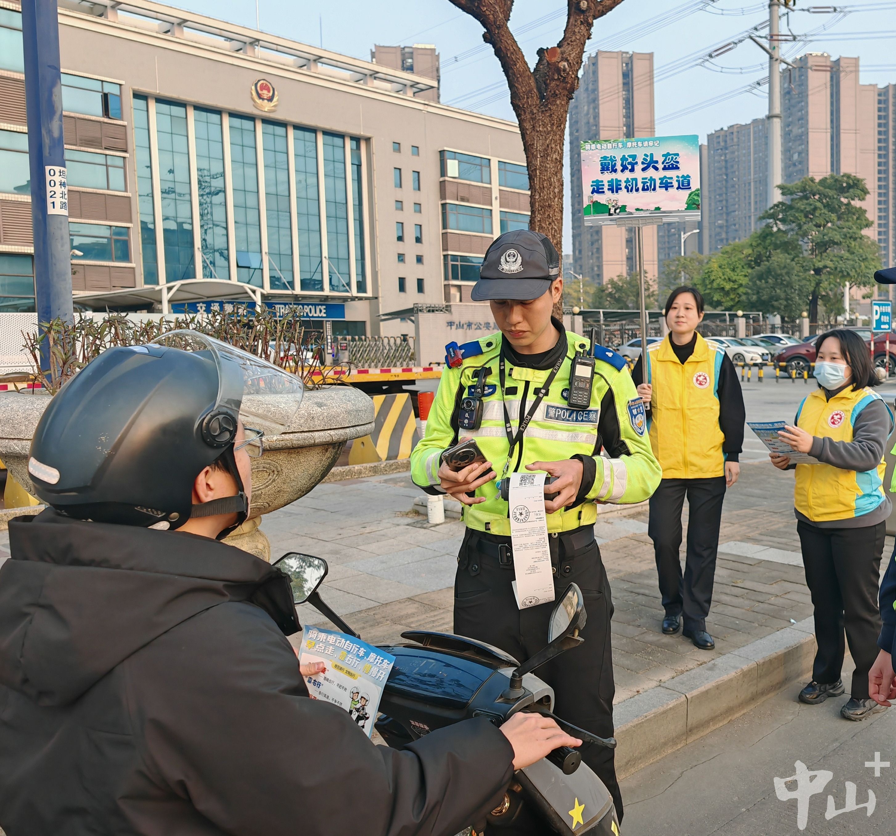 從1月24日起,中山市坦洲鎮(zhèn)“電動自行車、摩托車交通違法專項(xiàng)整治行動”開始吸納志愿者加入。