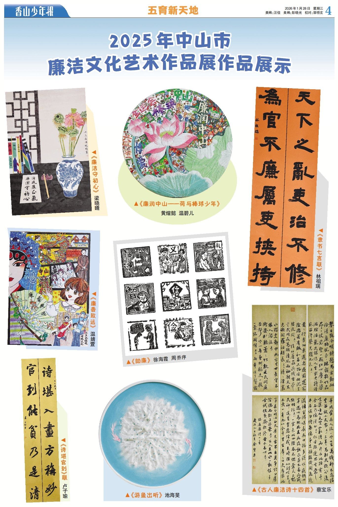 本期《香山少年報》展出“廉潤香山”2025年中山市廉潔文化藝術(shù)作品展的8篇優(yōu)秀作品,讓我們一起來看看吧!(→點擊查看詳情)