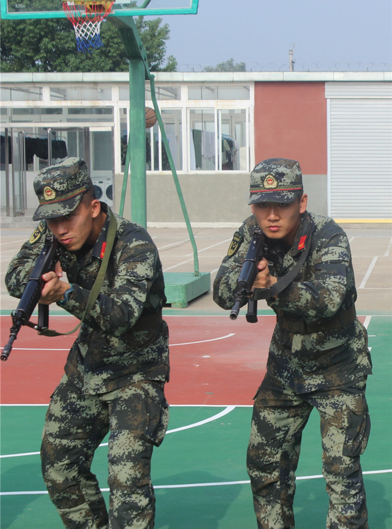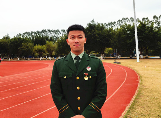 “小時(shí)候,我看過一部名為《烈火雄心》的電視劇,講的是消防員奮勇?lián)尵壬?,以濃煙考?yàn)斗志、以烈火洗煉人生的故事,那時(shí)我就對執(zhí)行任務(wù)類型的職業(yè)非常向往。再加上男生打小對飛機(jī)、槍支武器都有一種特殊的感覺,那時(shí)候就在想,有機(jī)會一定要去部隊(duì)歷練一番試試?!比尾敻嬖V記者,大二那年,他終于夢圓軍營,服役于武警河南總隊(duì)某中隊(duì)?!?個(gè)月的新兵連非常充實(shí),隊(duì)列訓(xùn)練、拉練、長途行軍......讓我印象深刻的是在行軍過程中,不管去到什么地方,只要一身軍裝在身,當(dāng)?shù)氐男∨笥讯紩揖炊Y,老百姓也特別友善,讓我感到非常自豪,這種軍民魚水情讓我感覺非常好。” 服役期間,因表現(xiàn)突出,任伯聰被評為“優(yōu)秀義務(wù)兵”,于2019年退出現(xiàn)役。離開部隊(duì)后,他重返大學(xué)校園完成學(xué)業(yè),并加入了學(xué)校的國防教育服務(wù)中心,為學(xué)校的征兵宣傳工作奔走發(fā)聲。在校期間,任伯聰從未忘記自己曾經(jīng)是一名軍人。“我堅(jiān)持每天長跑10公里,練習(xí)單杠,也一直有按照之前部隊(duì)的訓(xùn)練標(biāo)準(zhǔn)來保持鍛煉。”  左一為任伯聰。