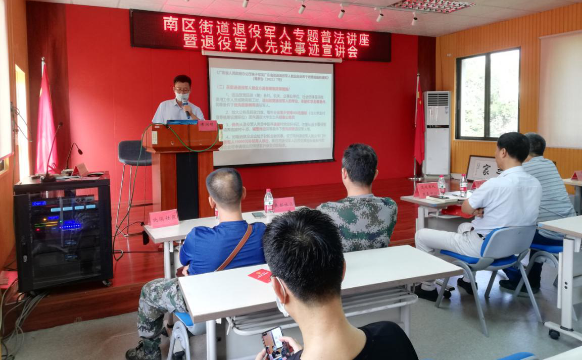 活動邀請南區(qū)街道駐點律師陳潤明現(xiàn)場授課,講解《退役軍人保障法》《民法典》《退役士兵安置條例》等法律法規(guī),對其中涉及的退役安置、就業(yè)創(chuàng)業(yè)、撫恤優(yōu)待、服務(wù)管理和法律責任等內(nèi)容進行了深入講解,切實展現(xiàn)尊法、學法、知法、用法的良好氛圍。