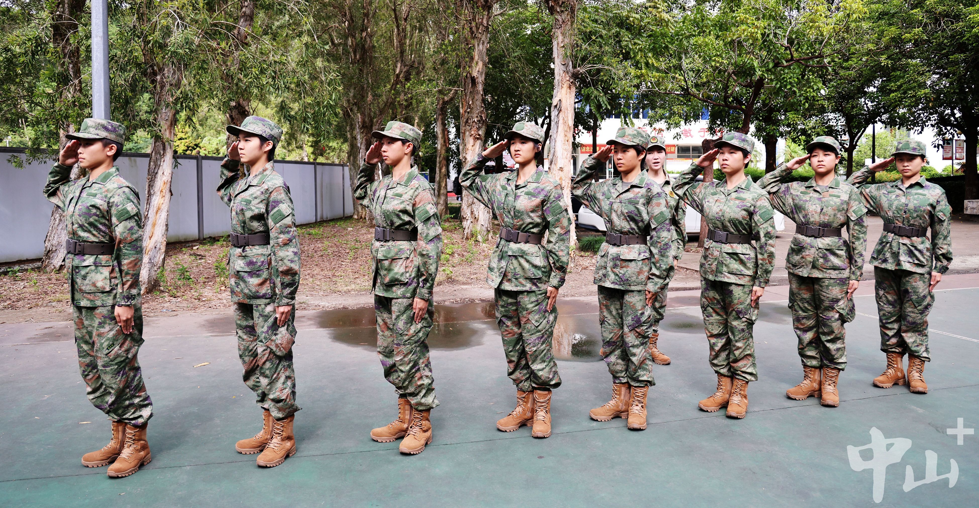 “青春就該熱血”“參軍報國是至高榮譽,能實現(xiàn)人生價值”……今年下半年,中山有8名女大學(xué)生攜筆從戎,毅然踏上軍旅路,讓青春在軍營飛揚。 “向右看齊!向前看……”9月16日,在中山市國防教育基地訓(xùn)練場上,今年下半年應(yīng)征入伍的中山女兵正在進行隊列訓(xùn)練。她們留著利落的短發(fā),身著筆挺的迷彩服,英姿颯爽,朝氣蓬勃,一張張略顯稚嫩的臉上,寫滿了對軍旅生活的向往。
