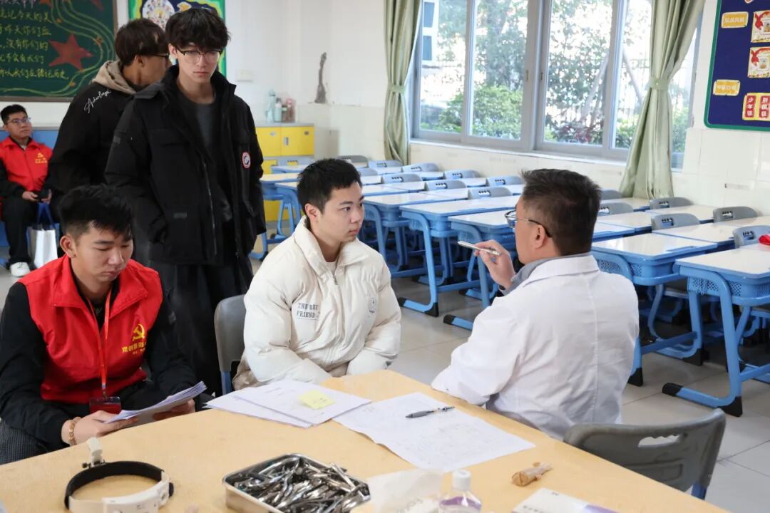 體檢現(xiàn)場,應(yīng)征青年在街道體檢保障人員的引導(dǎo)下,依次排隊進入內(nèi)科、外科、五官科、眼科、口腔科等檢查區(qū)域,秩序井然。南朗醫(yī)院醫(yī)務(wù)人員嚴(yán)格按照《應(yīng)征公民體格檢查標(biāo)準(zhǔn)》(2022年版)和體檢流程,認(rèn)真核對身份信息,逐項檢查身高、體重、血壓、視力、聽力等項目,確保不漏檢、不誤檢,嚴(yán)把兵員質(zhì)量第一關(guān)。