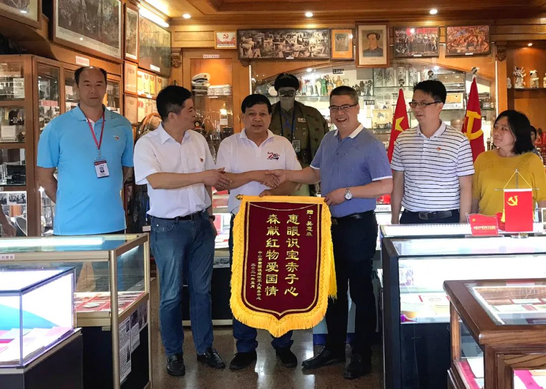 ▲黃圃鎮(zhèn)退役軍人服務(wù)中心向吳惠森贈(zèng)送錦旗 座談會(huì)結(jié)束后,與會(huì)人員參觀了吳惠森“家庭軍事博物館”,開展“老兵永遠(yuǎn)跟黨走·重溫紅色故事”主題黨日活動(dòng),感悟當(dāng)今生活來之不易,銘記歷史、勿忘國(guó)恥,引導(dǎo)廣大退役軍人增強(qiáng)聽黨話、跟黨走的行動(dòng)自覺,充分營(yíng)造軍愛民,民擁軍,軍民魚水一家親的良好社會(huì)氛圍,提升黃圃鎮(zhèn)退役軍人工作服務(wù)水平,以良好的工作成效慶祝中國(guó)共產(chǎn)黨成立100周年。