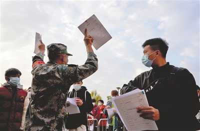應征青年核酸檢測合格后,在帶檢員的引導下進入體檢環(huán)節(jié),全程實行全封閉式管理。