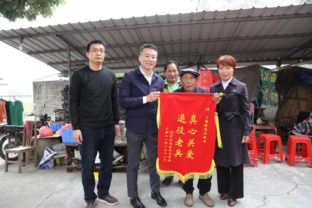 馮伯送上錦旗對(duì)鎮(zhèn)黨委政府的關(guān)心表示衷心感謝,希望子孫后代也能積極響應(yīng)征兵號(hào)召,傳承發(fā)揚(yáng)軍人保家衛(wèi)國(guó)的奉獻(xiàn)精神。