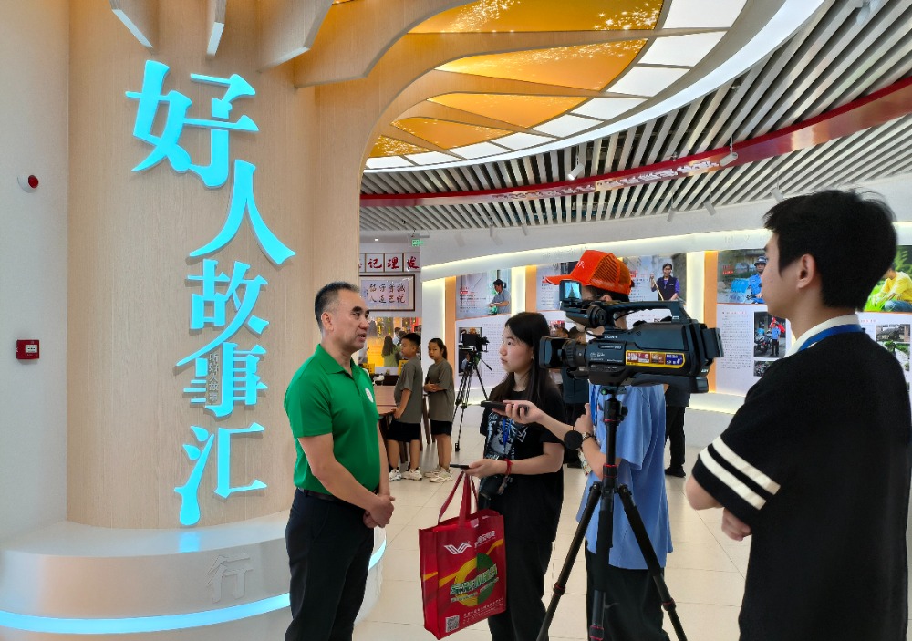 本次調(diào)研中,來自中央、省、市約20家媒體的記者,先后走訪東鳳鎮(zhèn)退役軍人服務(wù)中心、中山好人館等地。通訊員供圖 16日上午,媒體采風(fēng)團來到了中山好人館,退役軍人代表李克和孫宏寧帶領(lǐng)采風(fēng)團觀摩好人館,并介紹了退役軍人在志愿服務(wù)上如何為推動全市的社會道德建設(shè)貢獻力量。“中山退役軍人利用志愿服務(wù),宣傳了軍人作風(fēng)優(yōu)良的傳統(tǒng),這種公益形式也是對社會力量的補充,能夠?qū)θ鐣鸬桨駱幼饔??!绷私獾街猩绞胁蹞碥娭驹阜?wù)隊深入基層開展國防和愛國主義教育、中山市擁軍支前紅旗服務(wù)隊參與各項日常生活應(yīng)急救援的事跡后,《小康》雜志記者王莉華說,中山市退役軍人深度參與公益所展現(xiàn)出的擔(dān)當(dāng)和作為給她留下深刻印象。中國報道網(wǎng)《前沿資訊》欄目主編陳偉贊發(fā)出感慨,“志愿服務(wù)隊的工作非常扎實,退役軍人服務(wù)中心在用心用情服務(wù)退伍老兵上也做得很到位?!?/p>  退役軍人代表李克接受采訪。通訊員供圖
