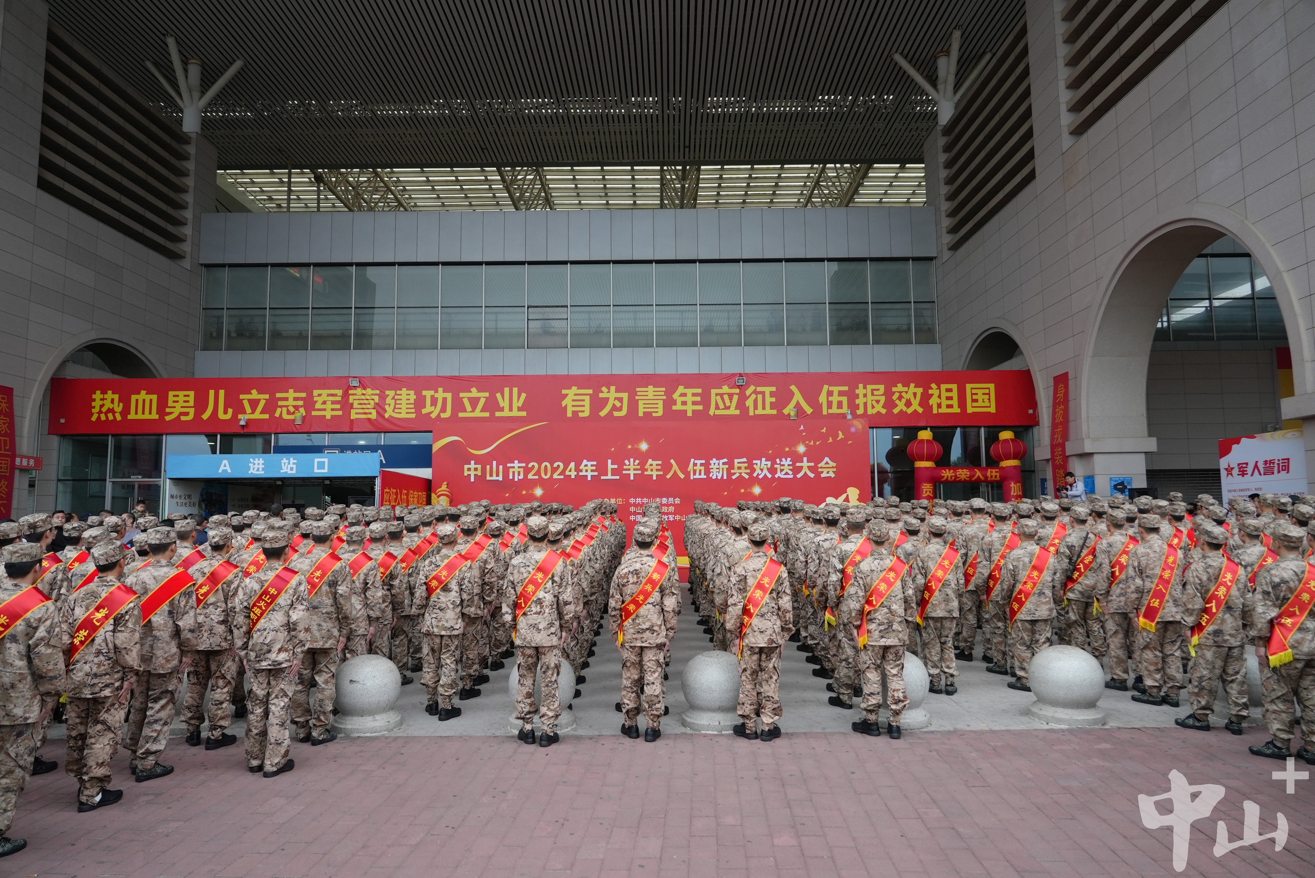 青春獻(xiàn)給國防,熱血報(bào)效祖國。 3月16日早上,中山市2024年上半年入伍新兵歡送大會(huì)在城軌中山站的進(jìn)站廣場(chǎng)舉行。300多名適齡青年經(jīng)過嚴(yán)格的體檢和政考,即將邁入軍營。 3月16日早上,中山市2024年上半年入伍新兵歡送大會(huì)在城軌中山站的進(jìn)站廣場(chǎng)舉行。記者 易承樂 攝