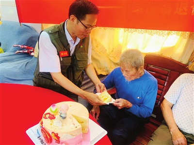 為百歲復(fù)員軍人祝壽。
