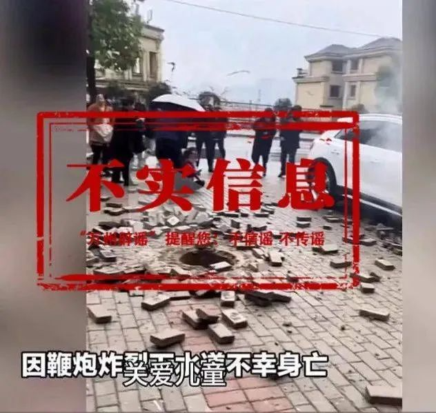 近日,一則短視頻消息聲稱,重慶萬州一女童向污水道投擲鞭炮,導致一人死亡。經(jīng)相關部門核實,該信息為謠言信息。