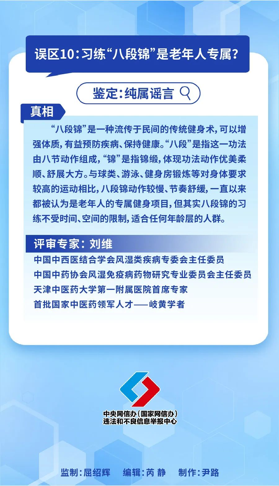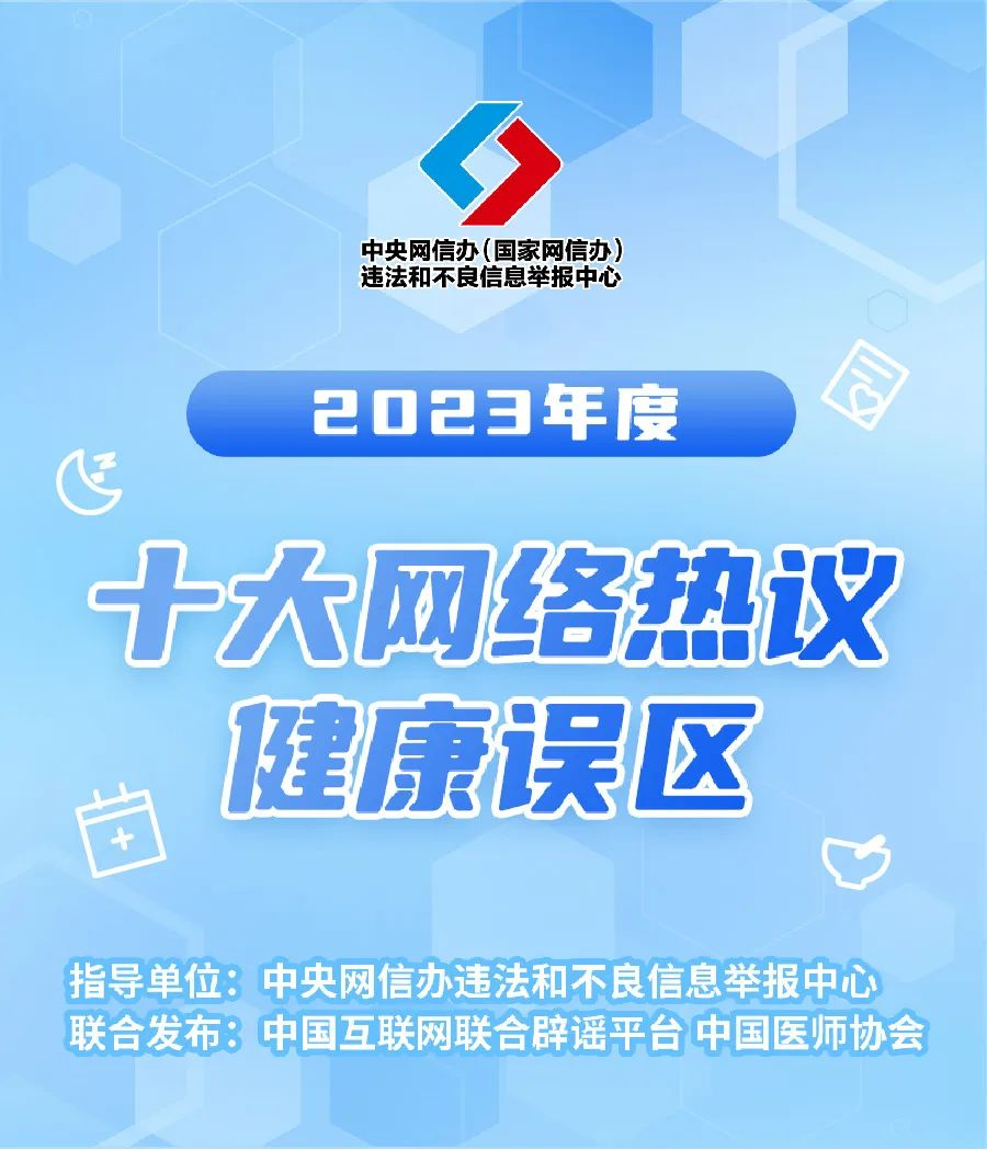 為守護(hù)人民群眾生命健康,中國互聯(lián)網(wǎng)聯(lián)合辟謠平臺、中國醫(yī)師協(xié)會(huì)聯(lián)合發(fā)布《2023年度十大網(wǎng)絡(luò)熱議健康誤區(qū)》,澄清醫(yī)療健康、飲食營養(yǎng)、科學(xué)運(yùn)動(dòng)等方面的誤區(qū),幫助網(wǎng)民提升識謠辨謠能力。