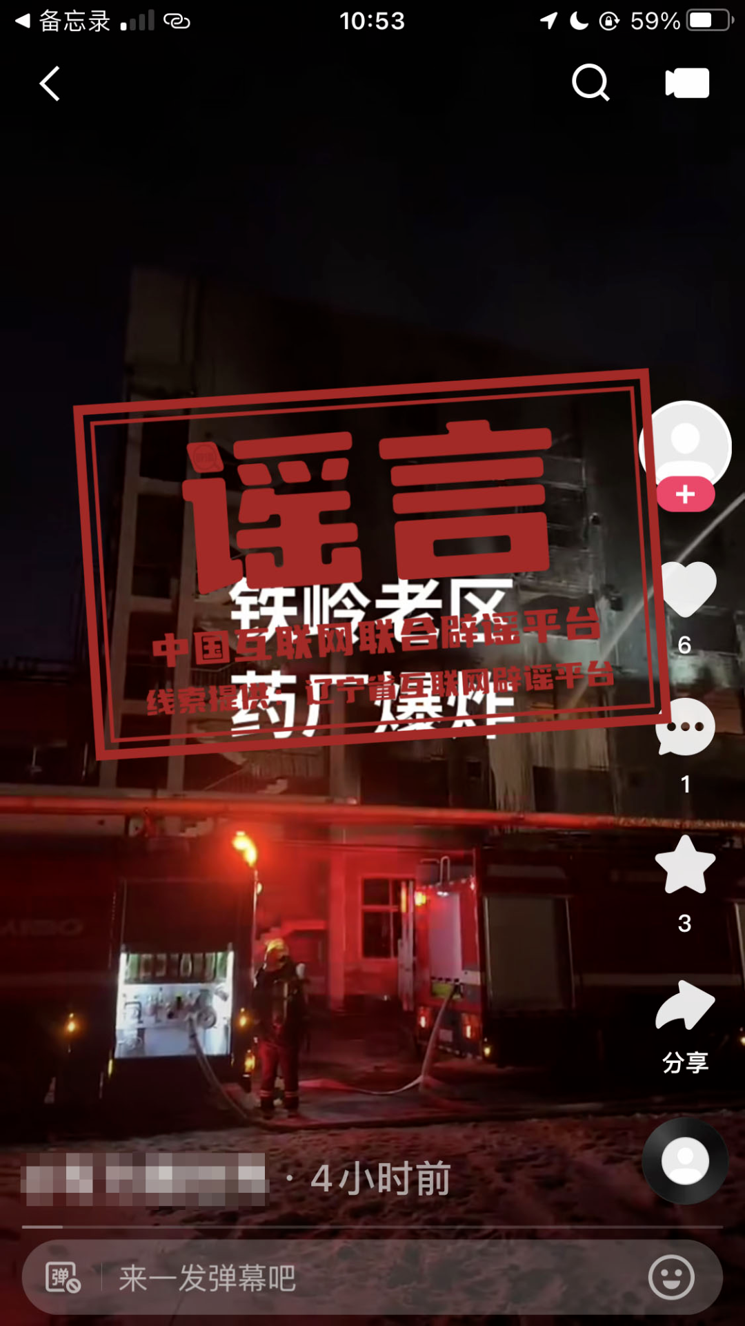 真相:近日,一網(wǎng)民在短視頻平臺(tái)發(fā)布信息稱“鐵嶺市銀州區(qū)某藥廠發(fā)生爆炸”,引發(fā)關(guān)注。經(jīng)遼寧省鐵嶺市公安局新城分局調(diào)查核實(shí),某工廠當(dāng)日下午一車間起火,相關(guān)部門迅速到場(chǎng)妥善處置,未發(fā)生爆炸。網(wǎng)民常某在未經(jīng)核實(shí)的情況下,將不實(shí)信息發(fā)布至網(wǎng)絡(luò)平臺(tái),造成不良社會(huì)影響。目前,公安機(jī)關(guān)已依法對(duì)常某予以行政處罰。(來(lái)源:@平安鐵嶺)