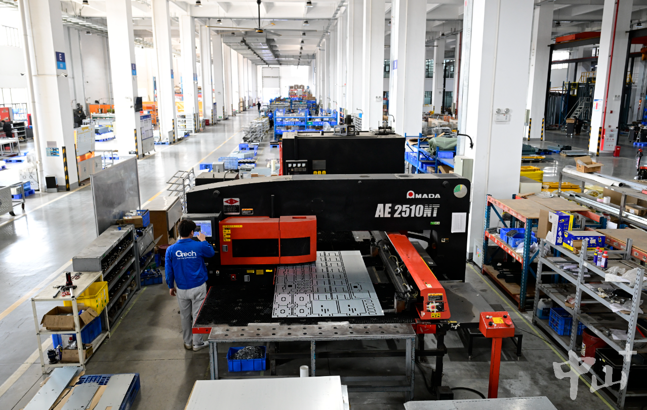 卓梅尼集團(tuán)車間,大型的數(shù)控沖床正在忙個(gè)不停地工作。(資料圖)記者 余兆宇 攝