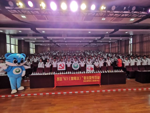 活動(dòng)過(guò)程中,西區(qū)禁毒社工以禁毒故事真人圖書館的形式,向?qū)W生們介紹了毒品的來(lái)歷,再結(jié)合現(xiàn)場(chǎng)講解毒品知識(shí),通過(guò)有獎(jiǎng)問(wèn)答環(huán)節(jié)讓同學(xué)們深刻的認(rèn)識(shí)到毒品對(duì)個(gè)人、家庭以及社會(huì)帶來(lái)的嚴(yán)重危害,增強(qiáng)拒毒、防毒的能力,為打贏新時(shí)代禁毒人民戰(zhàn)爭(zhēng)貢獻(xiàn)力量。隨后禁毒社工帶領(lǐng)全體學(xué)生進(jìn)行莊嚴(yán)宣誓,宣誓完畢后,社工利用禁毒模具現(xiàn)場(chǎng)為學(xué)生們講解毒品種類和危害,分享戒毒康復(fù)實(shí)例,西區(qū)街道禁毒社工讓學(xué)生們?cè)诨?dòng)過(guò)程中潛移默化學(xué)習(xí)禁毒基本知識(shí),寓教于樂(lè)。