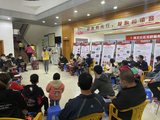 12月26日,大涌鎮(zhèn)南文社區(qū)一片熱鬧,鼓聲此起彼伏。100多名群眾在南文社區(qū)黨群服務(wù)中心了解禁毒知識,體驗“鼓圈”文化。