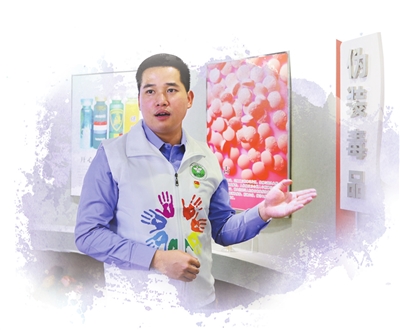 ▲3月31日,中山市禁毒志愿者總隊隊長陳克誠在中山市禁毒教育基地開展志愿服務(wù)。